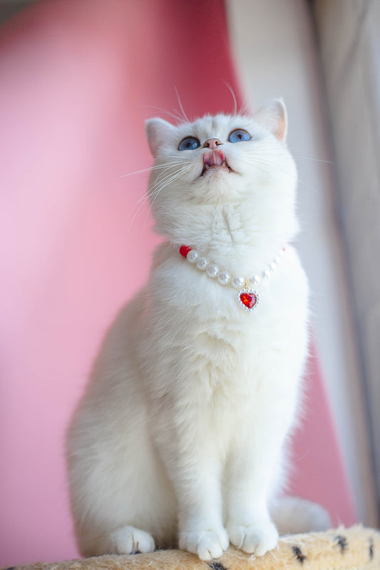 Collier pour Chat avec Perles et Petit Cœur